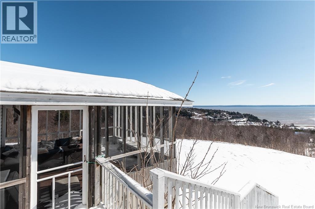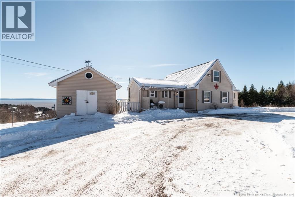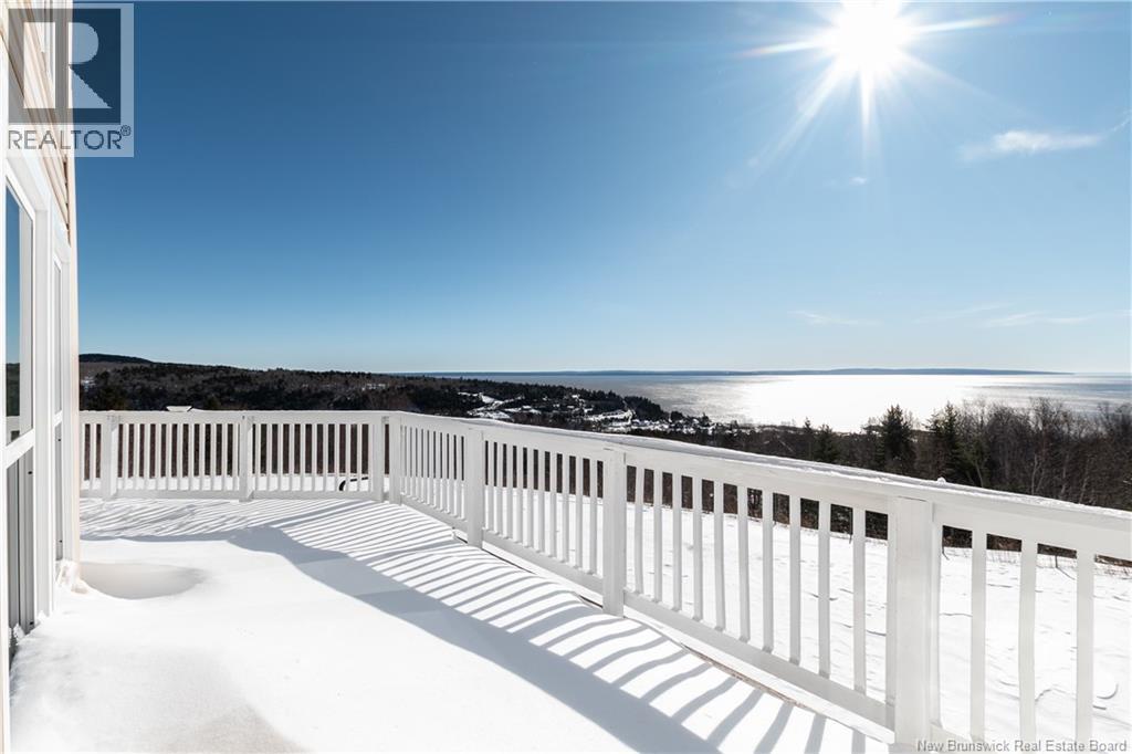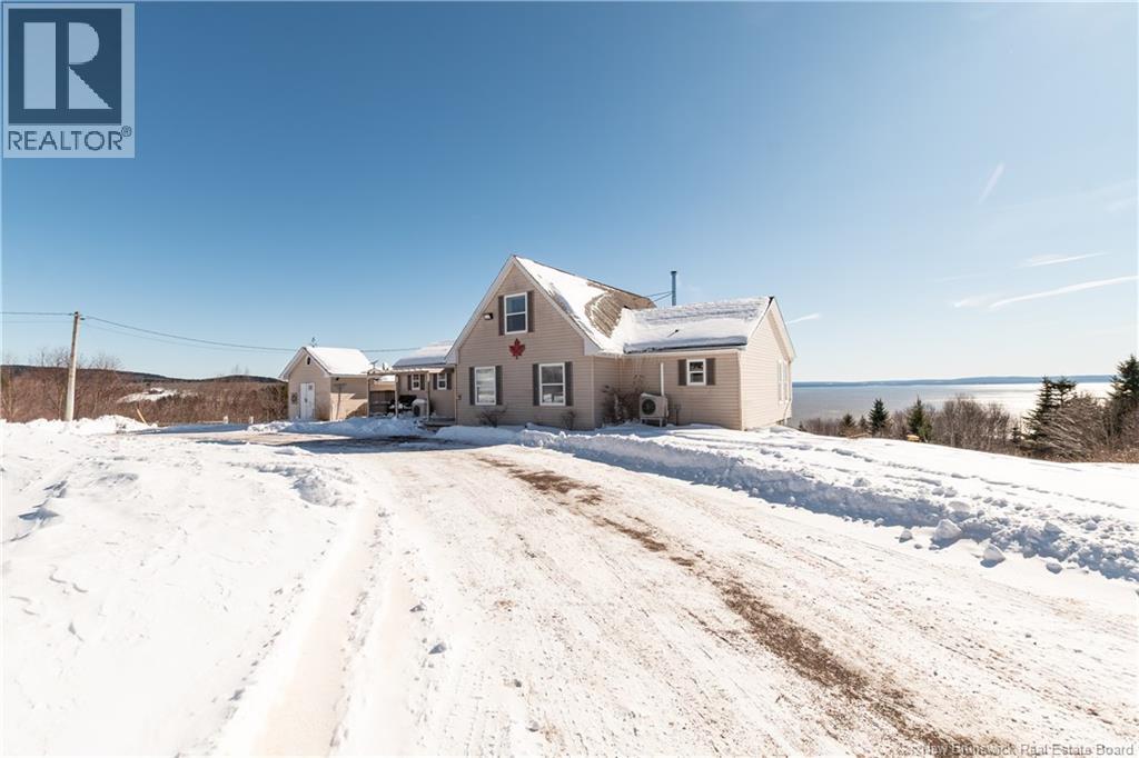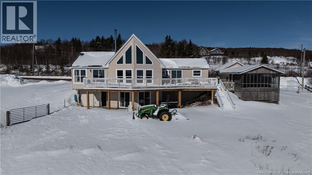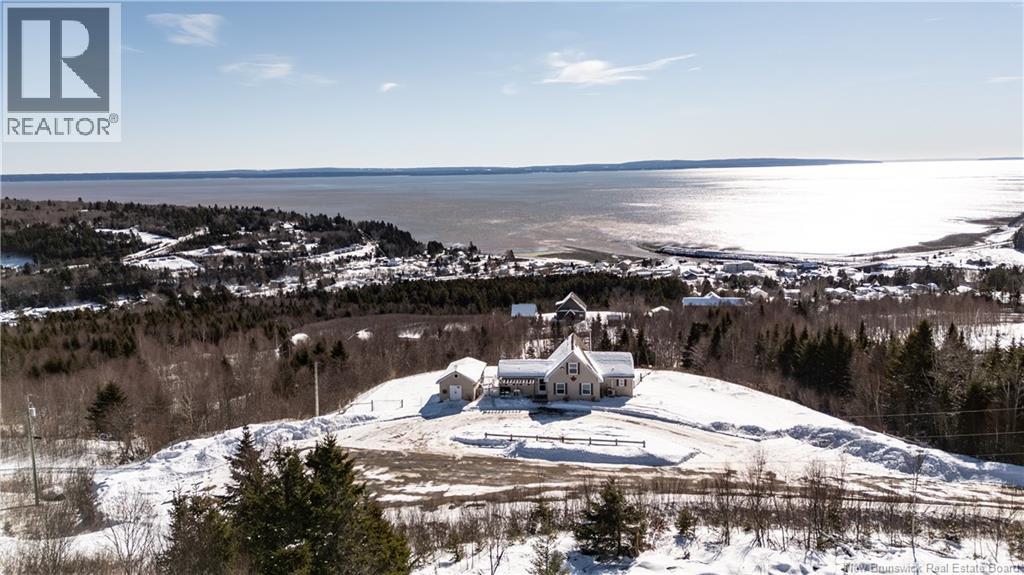 Welcome to 9 Brittany, this 4 bedroom 2.5 bathroom property is sitting up high on 1.9 acres with a panoramic view of the Bay of Fundy. This property offers a lifestyle year round with the beach, ATV & snowmobile trails. Tucked away on a quiet rural Court, you can see Fundy National Park from your yard. Featuring propane range, stainless steel appliances, fenced yard, quartz countertops, white shaker cupboard doors, central vac,a whole wall of windows and generator hook up. Main level boasts everything you need to have one level living with patio doors leading out the primary bedroom onto the veranda, perfect place to enjoy a coffee and watch the sun rise & smell the salt water in the air. Your eyes will be drawn to the 16 ft ceilings and beams in the great room. The walk out basement offering a suite with walk out doors leading to the hot tub & bathroom along with an unfished area for storage, gym or workshop. The 2nd level has an additional bedroom for guests. The home has large windows allowing for natural sunlight. This property is in a prime location in Alma, close to Fundy National Park, local shops enjoy a beverage at Holey whale or Lobster at one of the restaurants nearby. Home is heated by wood stove, electric baseboard and mini splits. This beach house is a place to walk in, relax & unwind from the everyday life. Picture yourself sitting outside in the gazebo watching the fishing boats as you soak in the rural lifestyle. Contact your REALTOR® today. (id:34572)