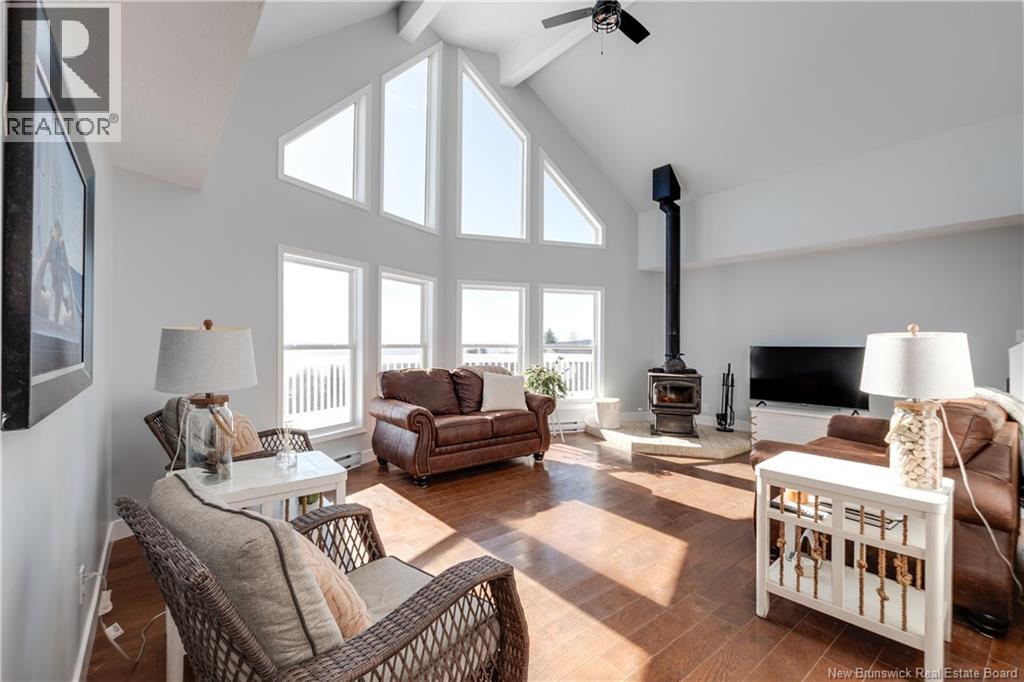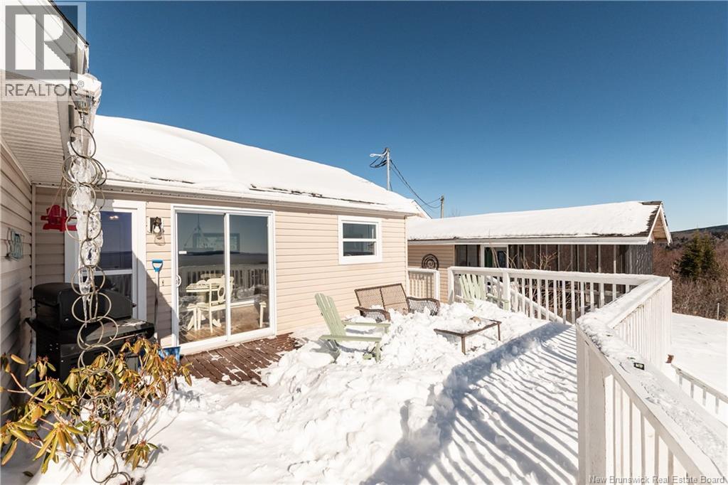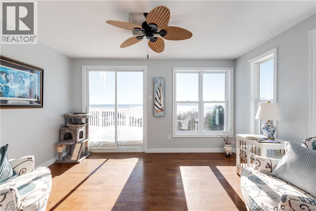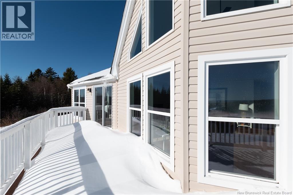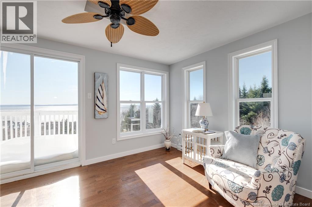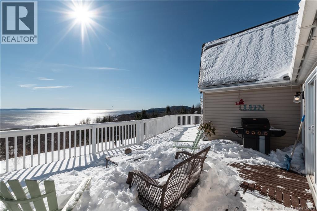 Welcome to 9 Brittany, this 4 bedroom 2.5 bathroom property is sitting up high on 1.9 acres with a panoramic view of the Bay of Fundy. This property offers a lifestyle year round with the beach, ATV & snowmobile trails. Tucked away on a quiet rural Court, you can see Fundy National Park from your yard. Featuring propane range, stainless steel appliances, fenced yard, quartz countertops, white shaker cupboard doors, central vac,a whole wall of windows and generator hook up. Main level boasts everything you need to have one level living with patio doors leading out the primary bedroom onto the veranda, perfect place to enjoy a coffee and watch the sun rise & smell the salt water in the air. Your eyes will be drawn to the 16 ft ceilings and beams in the great room. The walk out basement offering a suite with walk out doors leading to the hot tub & bathroom along with an unfished area for storage, gym or workshop. The 2nd level has an additional bedroom for guests. The home has large windows allowing for natural sunlight. This property is in a prime location in Alma, close to Fundy National Park, local shops enjoy a beverage at Holey whale or Lobster at one of the restaurants nearby. Home is heated by wood stove, electric baseboard and mini splits. This beach house is a place to walk in, relax & unwind from the everyday life. Picture yourself sitting outside in the gazebo watching the fishing boats as you soak in the rural lifestyle. Contact your REALTOR® today. (id:34572)