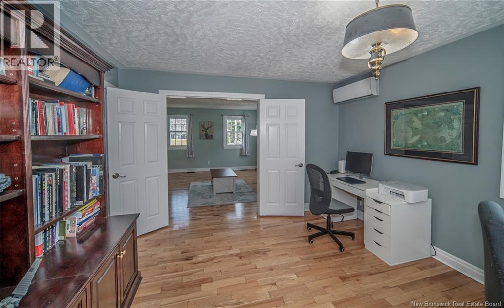 Spacious 2-Storey Family Home in Sought-After New Maryland! Set on large lot in great family-friendly location just minutes to Fredericton. Classic exterior with covered front entry and attached double garage gives great curb appeal, while inside youll find bright, well-designed main floor with impressive principal rooms throughout. Kitchen features granite countertops, built-in appliances, island, stylish backsplash, and sunny breakfast nook overlooking the backyard. Just off the kitchen is huge formal dining room with French doors leading to main floor family room, where oversized patio doors open to private deck and backyard framed by mature trees. This level also includes welcoming living room with propane fireplace, French doors to den/office that could easily serve as main floor bedroom, laundry room with direct access to the backyard, separate half bath, and practical mudroom off attached double car garage. Upstairs offers three massive bedrooms, updated main bath, and expansive primary suite complete with propane fireplace, double closets, sitting area, and ensuite. Lower level adds even more living space with a huge rec room, 4th bedroom, and plenty of storage. Windows were replaced in 2024. Located in one of the areas most popular communities, this property offers the perfect blend of space, privacy, and convenience with easy access to Fredericton, recreation, and everyday amenities. (id:34572)