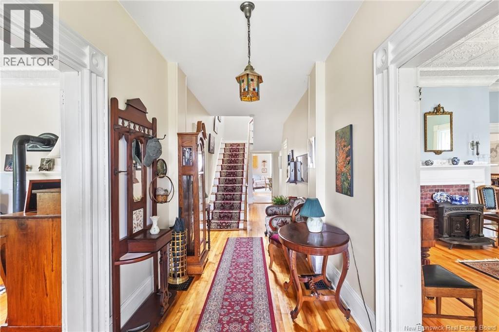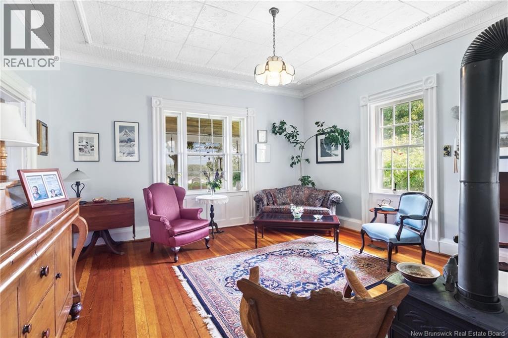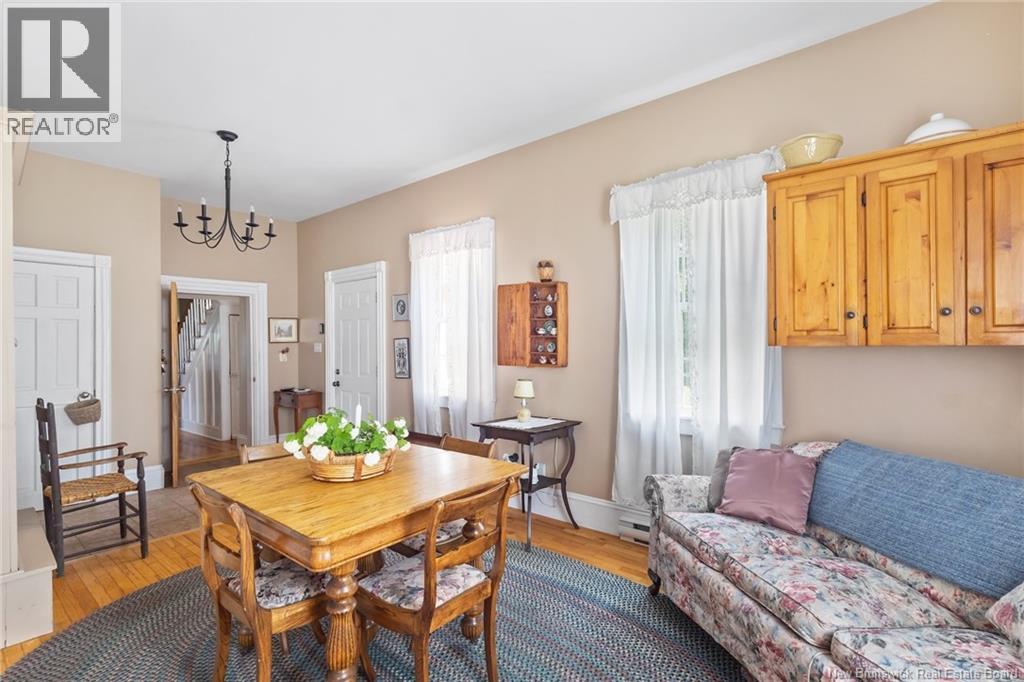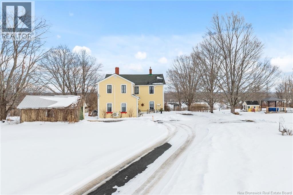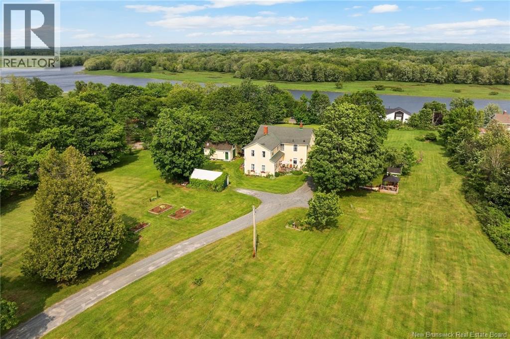 Income potential/Granny Suite! Perched above the Saint John River on 3.5 picturesque acres, this beautifully maintained historic residence blends timeless character with modern comfort. The home shows remarkable craftsmanship, from crown moldings to rich woodwork preserved throughout its storied interior. The inviting eat-in kitchen, centered around an antique stove, has long been a gathering place for family and friends. From there, step into the dining room where a wood-burning fireplace adds warmth and old-world charm. The family room provides a comfortable flow for everyday living. A thoughtfully designed addition on the main level creates flexibility, featuring a functional granny suite ideal for multigenerational living, guests, or rental income potential. With its own private feel, it offers a fantastic opportunity to offset expenses while maintaining privacy in the main home. Upstairs, youll find four spacious bedrooms, a second full bath, a serene sitting room, and a versatile bonus area complete with its own staircase to the main level, perfect for an office, studio, or additional living space. Outside, enjoy peaceful mornings on the front deck overlooking the river as sailboats drift by. The property also features a garage, workshop, charming gazebo, and expansive green space. Located in the village of Gagetown, known for its vibrant community and relaxed lifestyle, youre just a short walk to local breweries and the marina, and only 45 minutes to Fredericton. (id:34572)