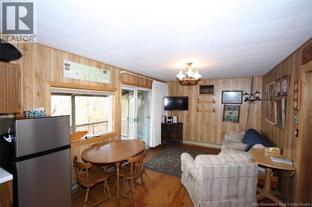 Looking for the perfect place to unwind without breaking the bank? Youll love this cozy two-bedroom camp nestled on a hill overlooking the Bogan on the Miramichi River, with land stretching all the way to the waters edge with an open productive salmon fishing pool, called the Blissfield Pool. Unlike most recreational properties at this price, it offers full power and a spring-fed well for running water. The open-concept kitchen, dining and living area features a wood cookstove, ample cabinetry, space for a dining table and patio doors leading to a screened deck with a peaceful view of the property. Theres a bathroom with a vanity and toilet, plus two bedrooms with bunkbeds, ideal for family or guests. The driveway borders the NB Trail, making this a dream spot for snowmobilers and ATV riders and access is easy with a deeded road from Route 8 at civic 9412. Located just minutes from the Village of Doaktown for groceries, Tim Hortons and other essentials. This retreat offers total privacy without being too remote. Known for excellent fishing and hunting, this property is a great value and a perfect escape for nature lovers. (id:34572)