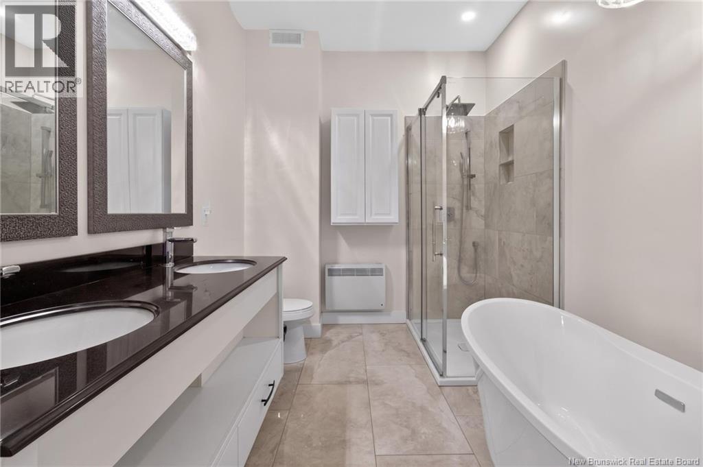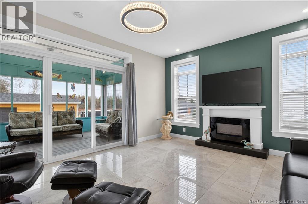 Welcome to 949 Elmwood Drive, Monctona beautifully crafted, modern home built in 2020, offering refined finishes, expansive living spaces, and a prime location just minutes from Costco and everyday amenities. From the moment you arrive, the striking exterior and inviting covered entry set the tone for what awaits inside. A spacious foyer welcomes you into an impressive open-concept living area, where natural light, elegant tile flooring, and carefully curated finishes create a bright and sophisticated atmosphere. At the heart of the home, the kitchen is designed to impress with crisp white cabinetry, stainless steel appliances, and a large statement island with seatingperfect for entertaining or gathering with family. Designer light fixtures elevate the space, while the layout flows seamlessly into the dining area and living room. The living room is anchored by a modern fireplace, adding warmth and a refined focal point. Patio doors lead to a beautifully finished sunroom, offering a tranquil extension of the living space and a perfect setting to relax while overlooking the backyard. The primary suite provides a private retreat, complete with a spa-inspired 5-pcs ensuite.. A second bedroom, a full bathroom, and a dedicated office on the main level offer both comfort and flexibility. The fully finished lower level continues to impress with expansive living areas, including a large family room and an oversized rec roomideal for entertaining, a home theatre, or a games space. This level also features a third bedroom, a full bathroom, and generous storage. A true standout feature of this property is the impressive double attached garage, offering exceptional space for vehicles, storage, or a workshop, complemented by a detached garage for added versatility. This home offers a seamless blend of style, space, and functionality in a highly desirable locationperfect for those seeking modern comfort with a touch of luxury. (id:34572)