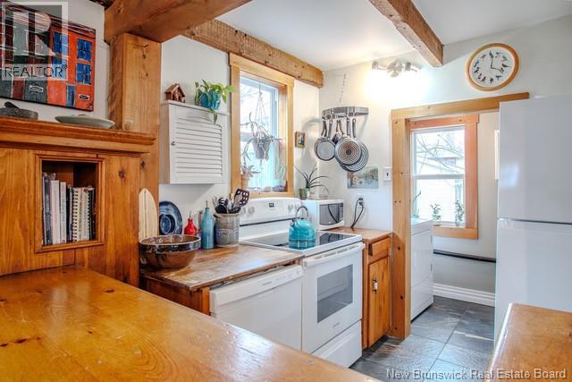 Nestled in the popular Millidgeville neighbourhood of Saint John, 953 Millidge Avenue is a charming older home filled with warmth, character and thoughtful updates. The bright main level features an open concept kitchen and dining area designed for easy everyday living and relaxed entertaining. Large windows invite sunshine throughout the space, highlighting exposed brick, authentic wooden beams and a beautifully turned wooden staircase that anchors the home with timeless appeal. A convenient washer and dryer area and a main level half bath add practicality without compromising charm. The second level offers a cozy reading nook or home office beneath soaring ceilings and a skylight; an inspiring space for work or quiet moments. The primary suite provides generous room for closet storage plus flexibility for a yoga or meditation area, creating a true personal retreat. 2 additional bedrooms and a full bath finished in white panelled wood with an acrylic tub/shower complete the upper level. Outside, enjoy a good-sized yard framed by mature trees, a storage shed, a large deck ideal for summer dinners and a welcoming covered entryway. All of this is within walking distance to the shores of river at the RKYC Located, scenic walking trails, UNBSJ, the Regional Hospital and the many amenities that make Millidgeville so desirable. This is a home with heart, offering character, comfort and a truly effortless East Coast way of life. (id:34572)