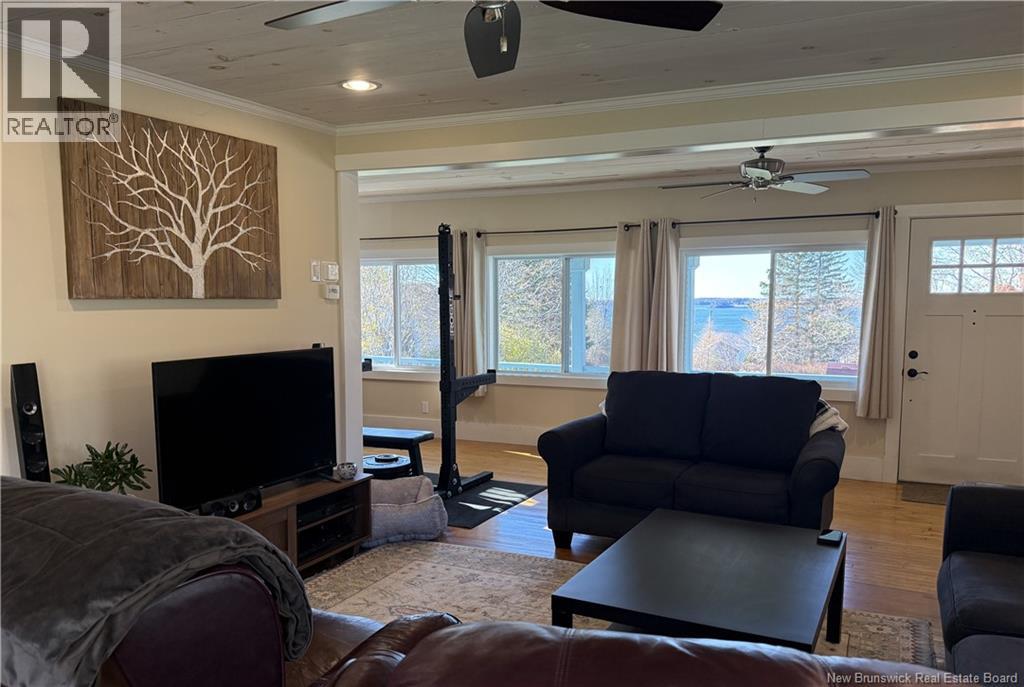 This charming three bedroom Cape Cod style home is located on a quiet property, offering ocean scenery from its location on the Welshpool Back Road. Relax on the front covered veranda, which bids a warm welcome to all who enter. Open the decorative yellow door to find a bright and spacious foyer & living room. Front windows spanning the width of the home allow for an abundance of light as well as comforting views of the sea. Pellet stove provides additional warmth & ambiance to the home. Patio door provides access to the deck overlooking the yard. Kitchen is inviting with a dining island that serves as the focal point of the room, as well as attractive cupboards, modern lighting & stainless steel appliances. Laundry, storage and a half bath are conveniently located in an addition off the kitchen. L shaped original staircase leads to the second level of living space. Fully renovated bathroom boasts a custom sit down shower and a beautiful vanity. Two of the three bedrooms offer water views from the upper level of the home. Lots of room in the treed yard for children & pets to play, safely contained by a perimeter fence. Raised building provides storage for outside items. Recent home energy evaluation resulted in the basement and attic being fully insulated, as well as the installation of a new heat pump furnace, with both heat & air ducted throughout the home for comfort during all seasons. New well pump, cap & well plumbing too! This impressive home awaits your visit! (id:34572)