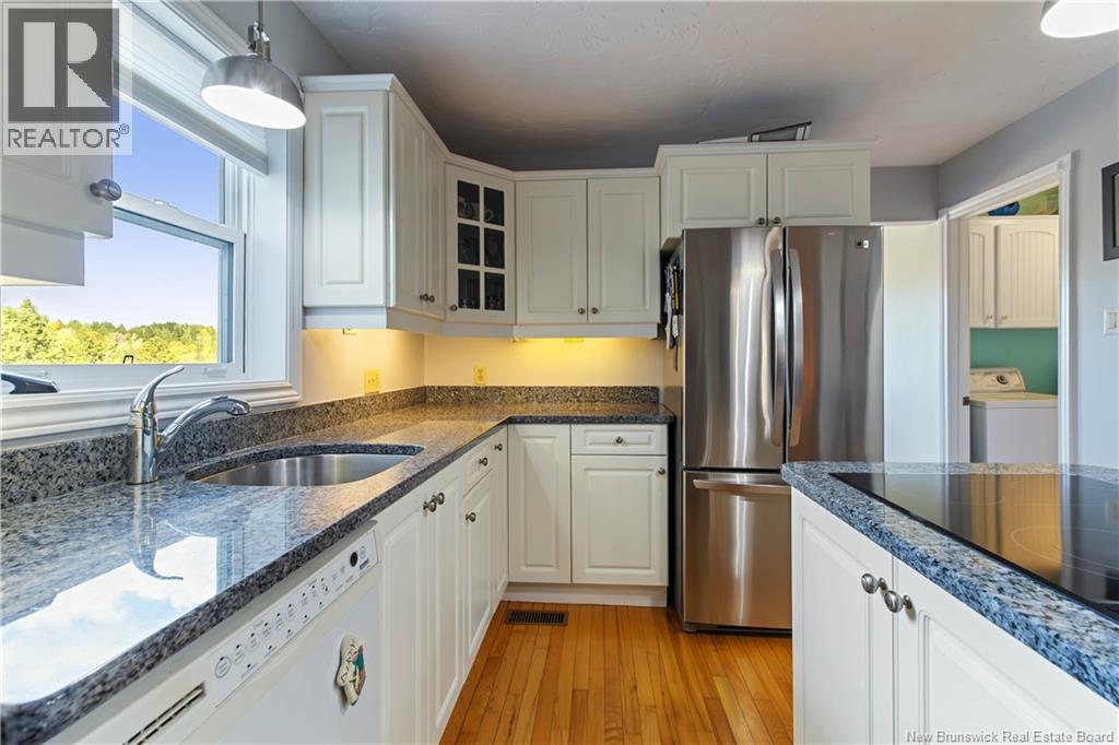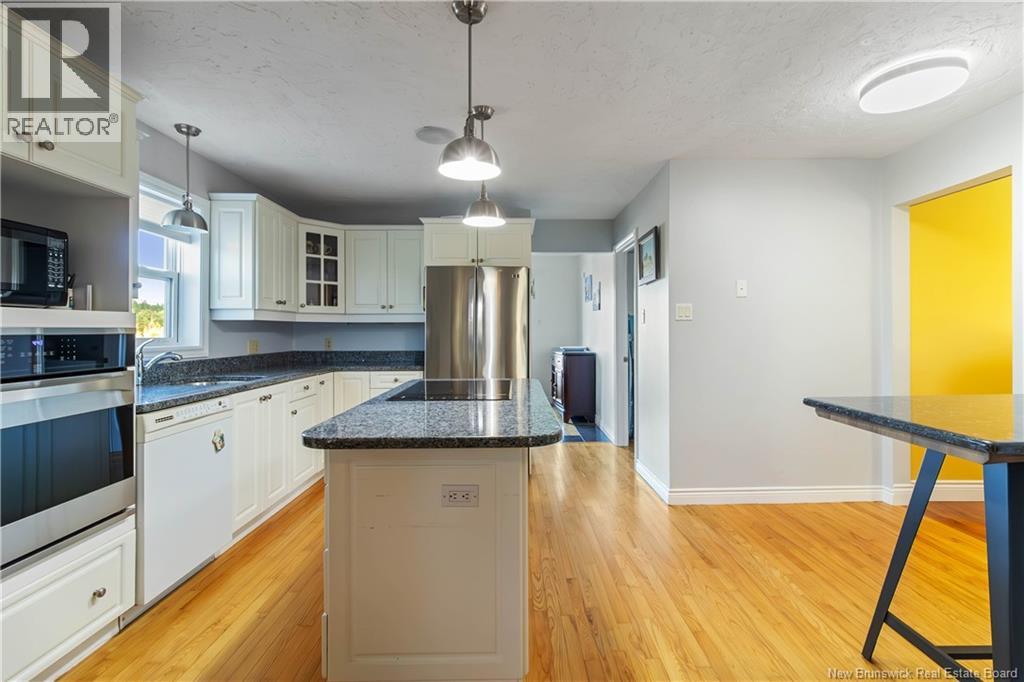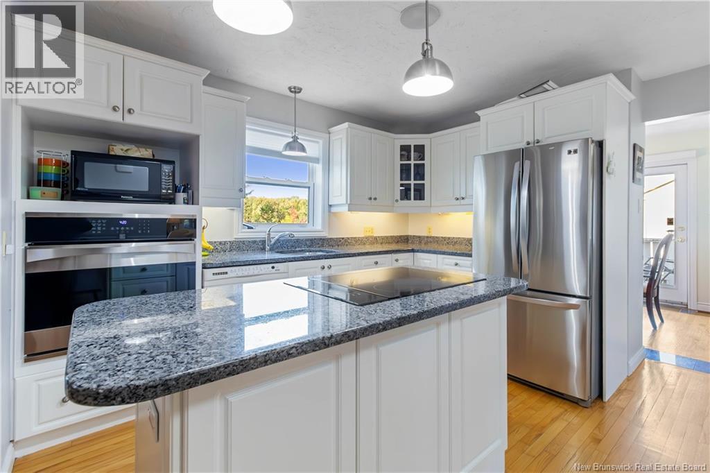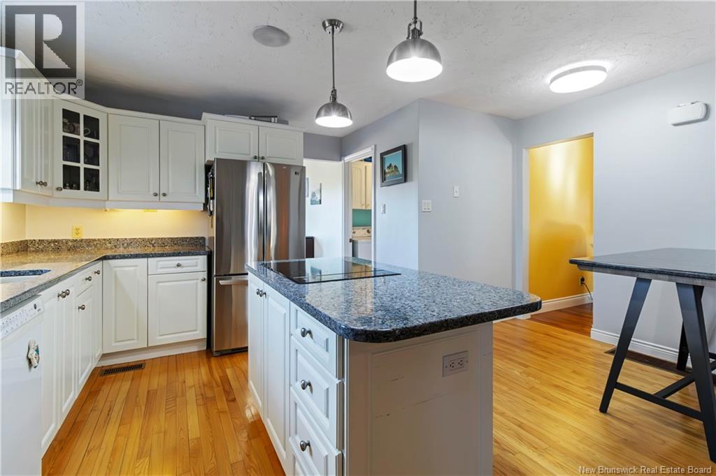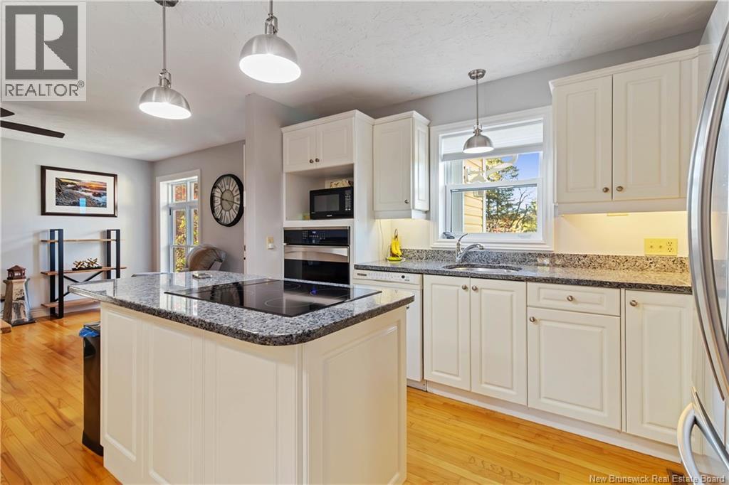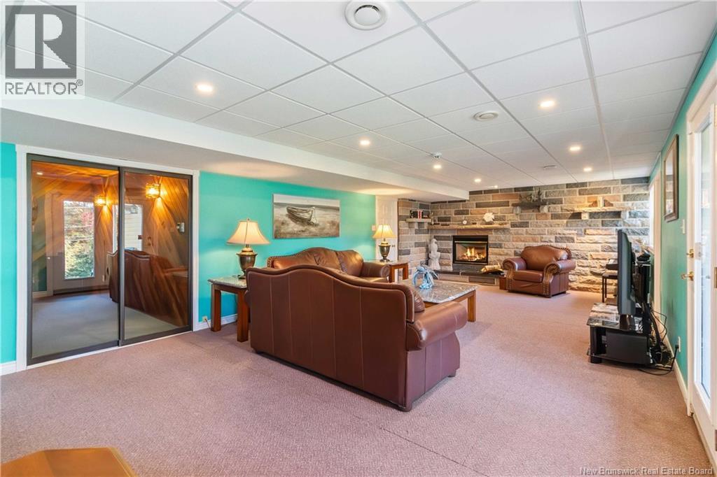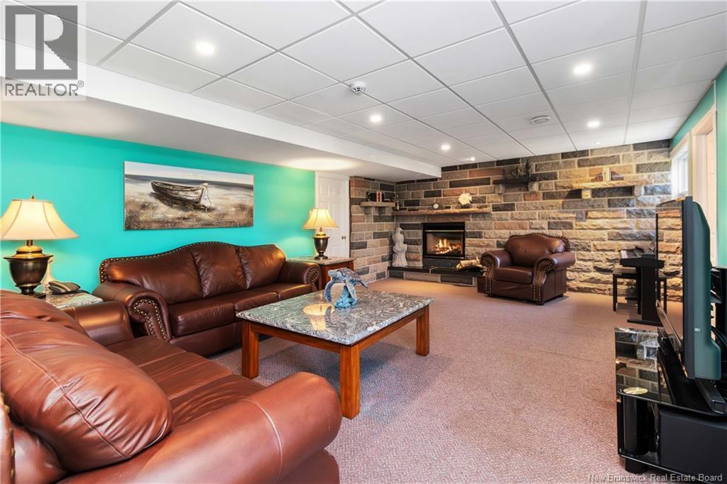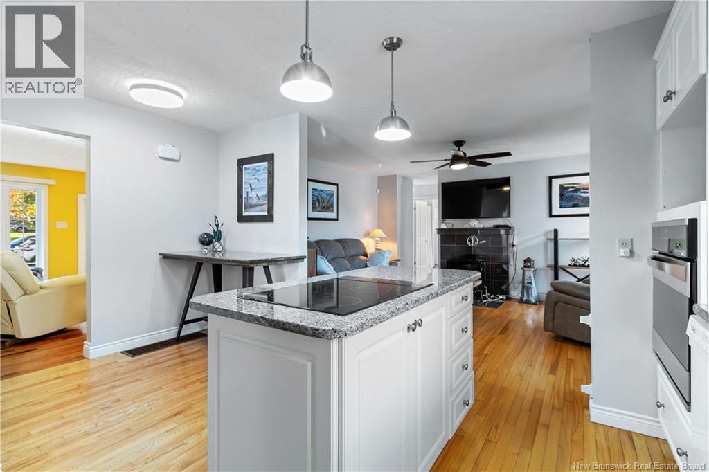 Moncton North Bungalow with Walkout Basement Backing Onto Walking Trail. Welcome to this charming bungalow in the highly desirable Moncton North area, perfectly situated with a walkout basement and direct access to the walking trail. Offering 3 spacious bedrooms and 2 full bathrooms, including a primary suite with a private 3-piece ensuite, this home is designed for both comfort and functionality. The main level features a bright white kitchen with a center island, built-in oven, and stovetop, seamlessly flowing into the dining area. A front living room adds charm, while a cozy family room with propane stove provides the perfect spot to relax. The fully finished lower level is a true retreat, boasting a large great room with propane fireplace and a stunning granite bar, along with a hot tub room, office, den, and plenty of storage. Step outside to enjoy the huge fenced backyard, complete with a utility shed featuring an overhead doorideal for additional storage or workshop space. This home offers plenty of room for a new family, combining space, warmth, and convenience in one of Monctons most sought-after neighborhoods. (id:34572)