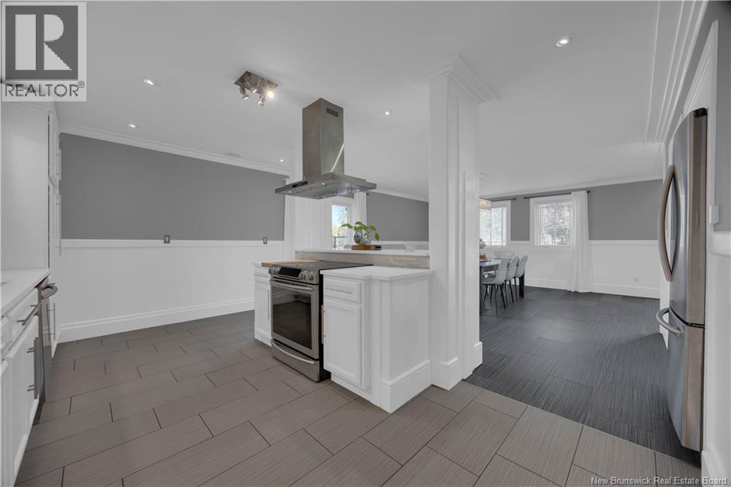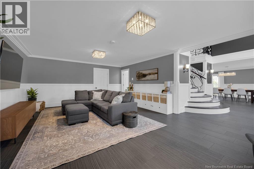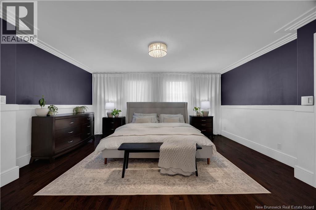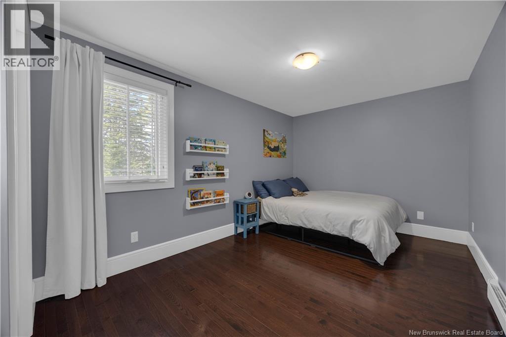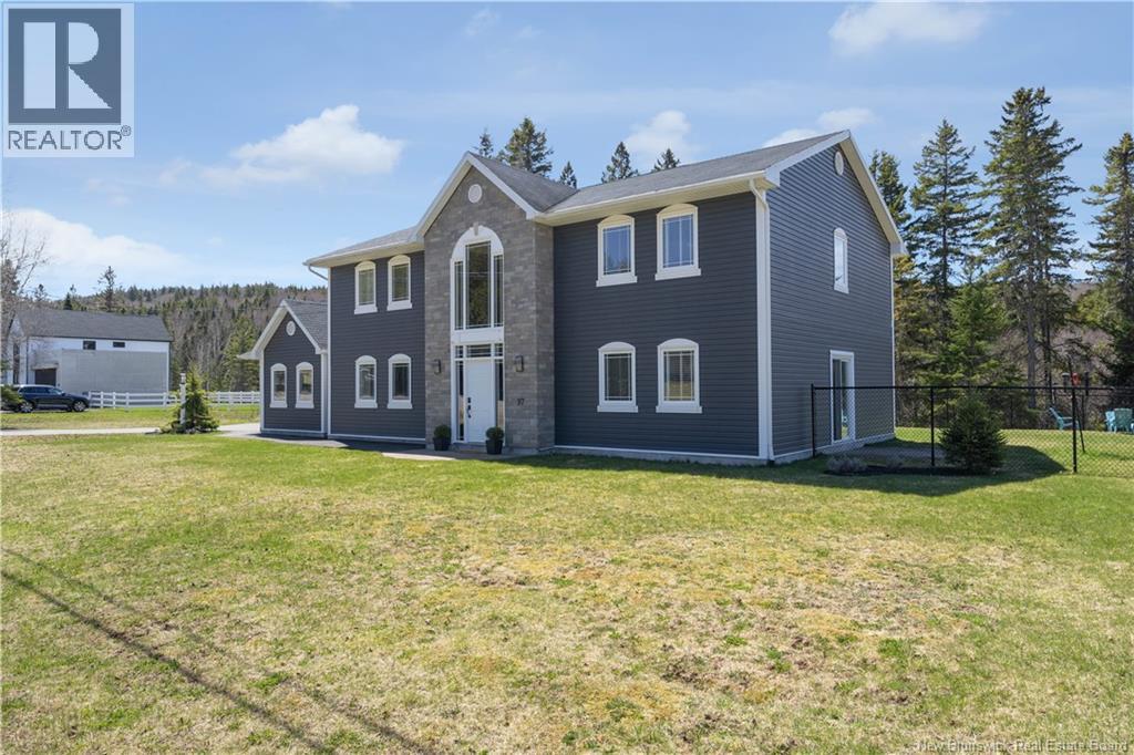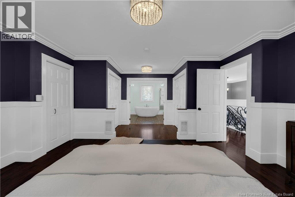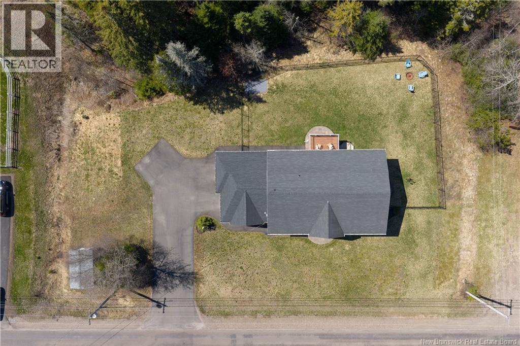 Custom-built contemporary 2-storey home set on a 1.83-acre lot in Hampton, approximately 5 minutes from Kredls Corner Market. Turn-key and well maintained. Front entry opens to a two-storey foyer with a wide staircase and open upper landing. The staircase creates a natural separation between the main living room and the kitchen and dining area while maintaining an open feel. The main floor is laid out for function and flow. The kitchen features full-height cabinetry, quartz countertops, a large central island, glass tile backsplash, stainless steel appliances, and extensive prep and storage space. The adjacent dining area accommodates an oversized table and is positioned for easy use when hosting. A full main floor bathroom includes integrated laundry and additional storage. The rear entry is set up as a mudroom, providing a practical transition space for day-to-day use. Heated tile flooring runs throughout the main level. Interior finishes include hardwood flooring on the second level, along with crown moulding and wainscoting carried consistently throughout. Second floor includes 4 bedrooms. The upper landing overlooks the foyer below and provides separation between the primary and secondary bedrooms. The main bathroom is finished with a freestanding soaker tub, glass walk-in shower, and double vanity. Attached double garage is fully finished with built-in storage and prepped for in-floor heat. Exterior includes a paved driveway with turnaround, fenced yard, 16x10 storage shed, covered patio, and a second-level deck with glass railing. The property is bordered by mature trees with a brook running along the rear of the lot. (id:34572)