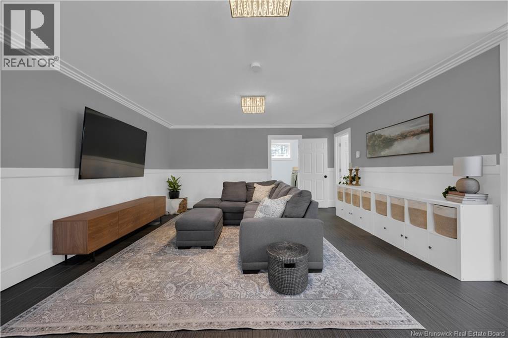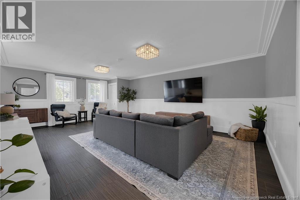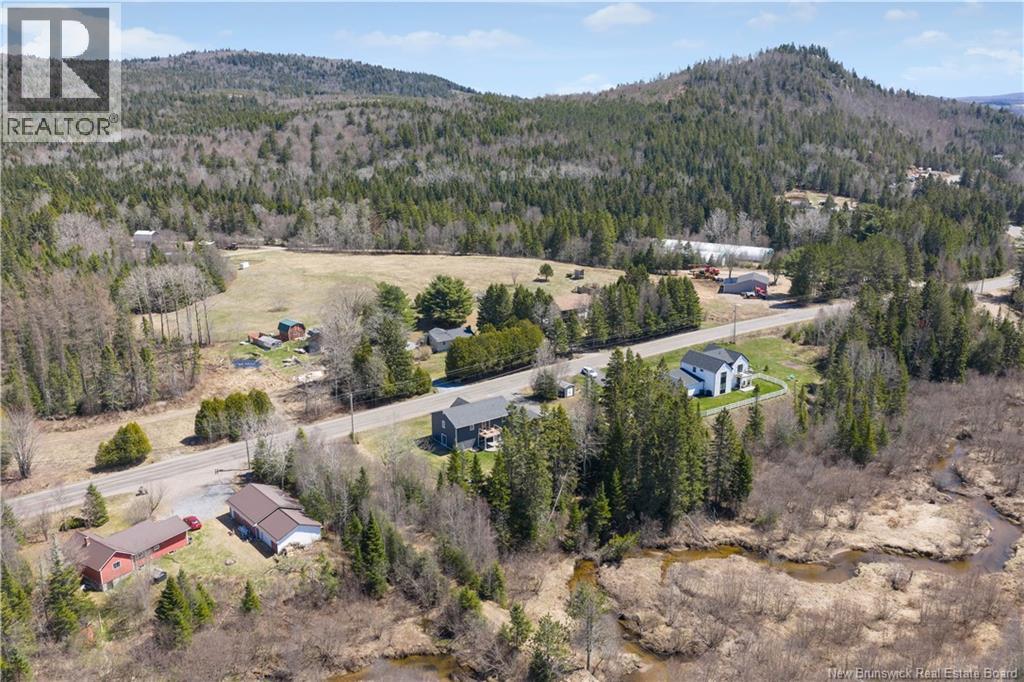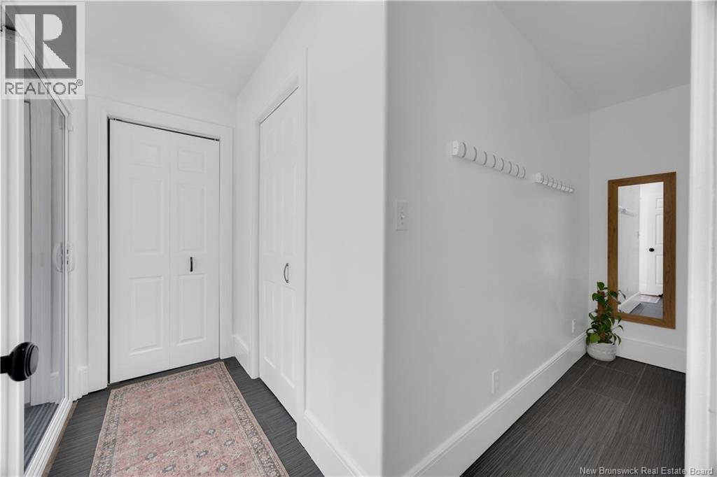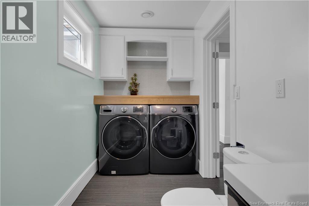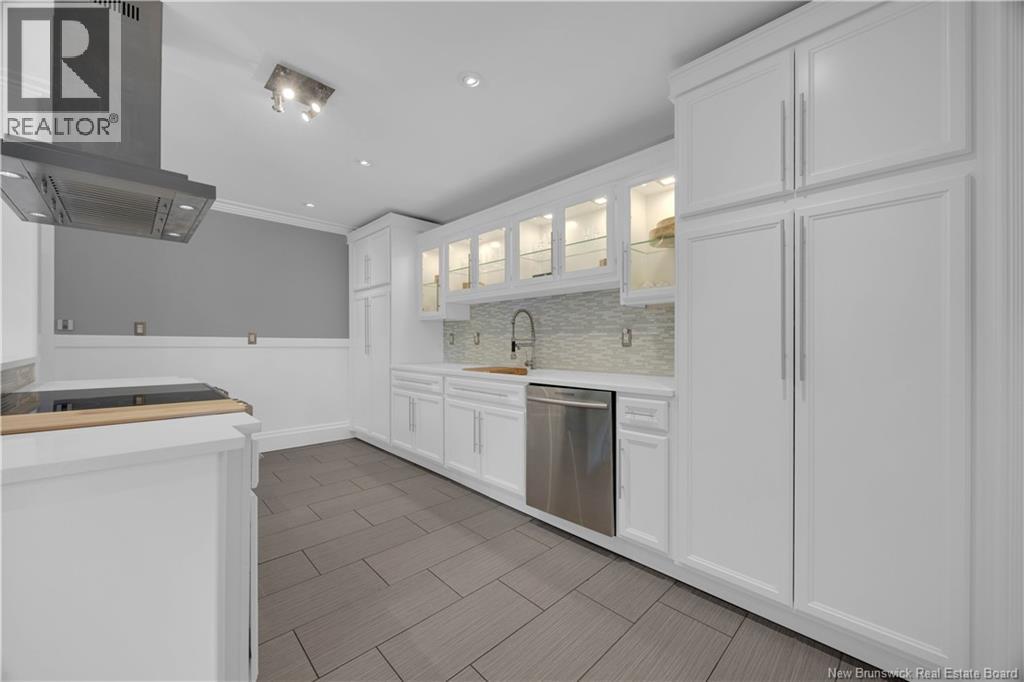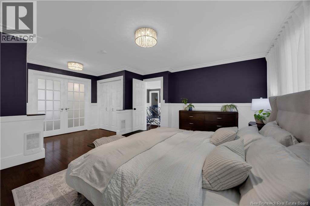 Custom-built contemporary 2-storey home set on a 1.83-acre lot in Hampton, approximately 5 minutes from Kredls Corner Market. Turn-key and well maintained. Front entry opens to a two-storey foyer with a wide staircase and open upper landing. The staircase creates a natural separation between the main living room and the kitchen and dining area while maintaining an open feel. The main floor is laid out for function and flow. The kitchen features full-height cabinetry, quartz countertops, a large central island, glass tile backsplash, stainless steel appliances, and extensive prep and storage space. The adjacent dining area accommodates an oversized table and is positioned for easy use when hosting. A full main floor bathroom includes integrated laundry and additional storage. The rear entry is set up as a mudroom, providing a practical transition space for day-to-day use. Heated tile flooring runs throughout the main level. Interior finishes include hardwood flooring on the second level, along with crown moulding and wainscoting carried consistently throughout. Second floor includes 4 bedrooms. The upper landing overlooks the foyer below and provides separation between the primary and secondary bedrooms. The main bathroom is finished with a freestanding soaker tub, glass walk-in shower, and double vanity. Attached double garage is fully finished with built-in storage and prepped for in-floor heat. Exterior includes a paved driveway with turnaround, fenced yard, 16x10 storage shed, covered patio, and a second-level deck with glass railing. The property is bordered by mature trees with a brook running along the rear of the lot. (id:34572)