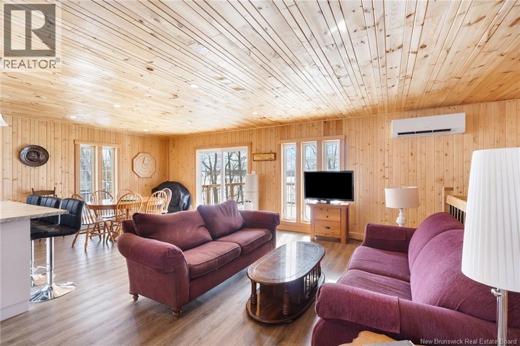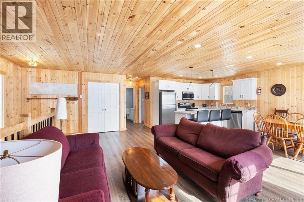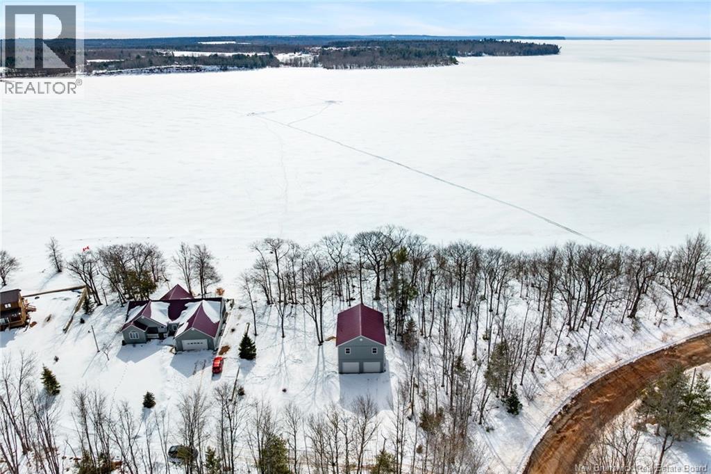 Waterfront cottage on Grand Lake! This beautiful newly constructed property sits directly on the scenic shores of Cumberland Bay, offering the ultimate blend of comfort and beauty. With majestic lake views and a central location between Moncton, Fredericton, and Sussex, you can enjoy peaceful waterfront living without sacrificing convenience. Step inside to discover a bright open-concept designperfect for relaxing family time or entertaining friends. The spacious kitchen island invites conversation and laughter over morning coffee or evening meals. Two well-sized bedrooms and a stylish main bath ensure comfort and functionality for everyday living or weekend getaways, with plenty of space for added guests. Downstairs, the impressive garage provides abundant space for vehicles, boats, and all your recreational gear, an ideal setup for year-round adventure. This area also offers potential for additional living space if desired. Outside, your private deck with patio doors is perfectly positioned for both privacy and panoramic lake views, ideal for gatherings, barbecues, or simply soaking in Grand Lakes famous sunsets. Set in a friendly, welcoming community, this cottage is a four-season retreat where serenity meets ease. Whether youre seeking a permanent home or a waterfront escape, this gem truly has it alla modern build, perfect location, and unbeatable views. Shared well agreement and easement to be completed prior to close. (id:34572)
